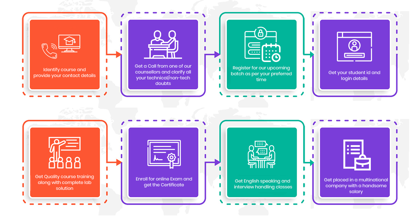 We provide this amazing benefit of getting retrained to our students that no other company has ever provided. Our first priority is to get our students qualify the certification exams and place you in some of the best jobs. However, if they are unable to pass the certification for the first time or not able to get a good job placement, we provide retraining for those students. This retraining is done for free of cost and we make sure our students placed in the best companies in the industry.